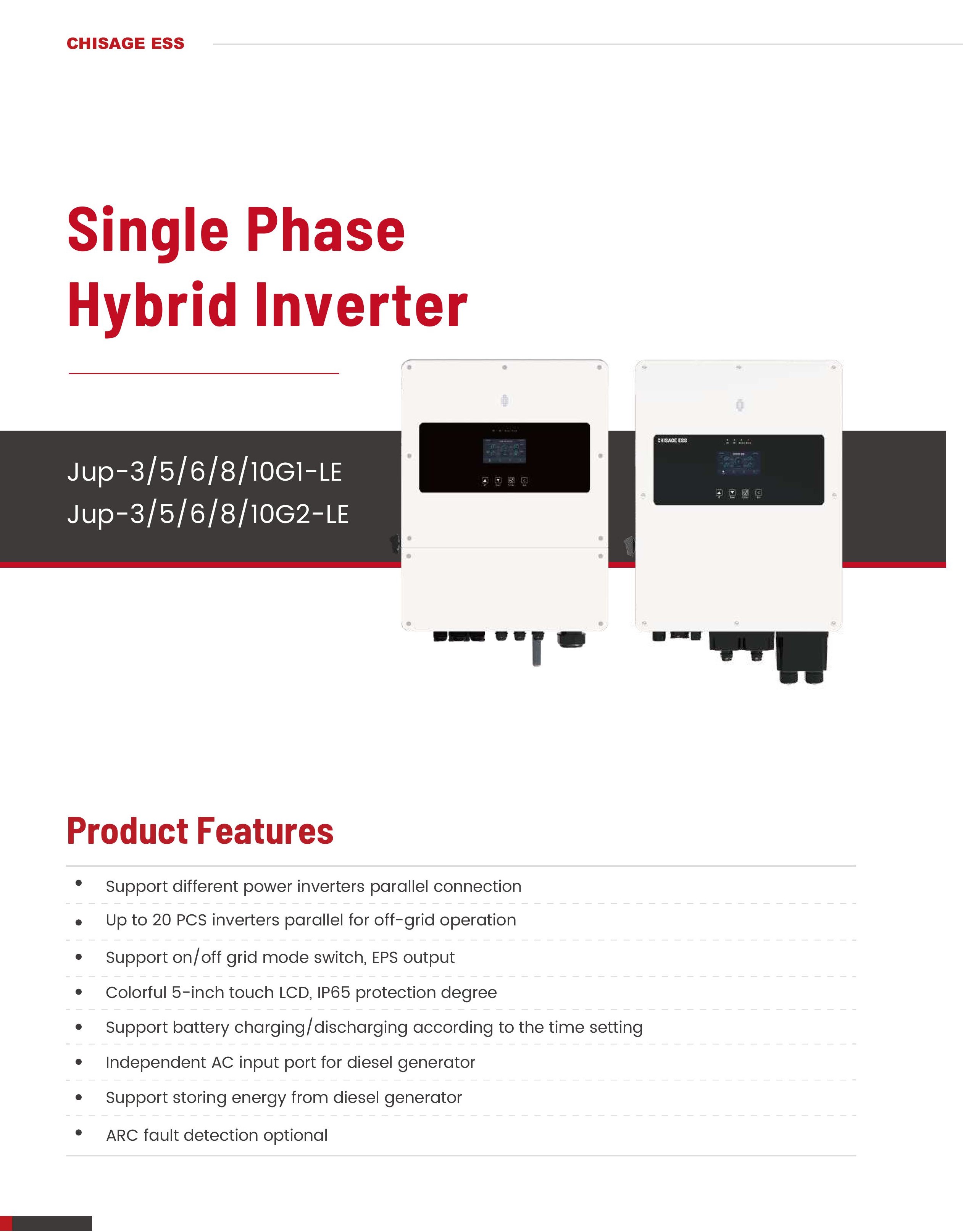 Biến tần CHISAGE Hybrid Áp Thấp 1 Pha 8kW – Jup-8G1-LE là dòng biến tần hybrid cao cấp được thiết kế tối ưu cho các hệ thống điện năng lượng mặt trời dân dụng và thương mại nhỏ. Với khả năng vận hành linh hoạt, độ bền cao và tích hợp công nghệ tiên tiến, sản phẩm mang lại hiệu suất vượt trội và sự an tâm cho người sử dụng.
