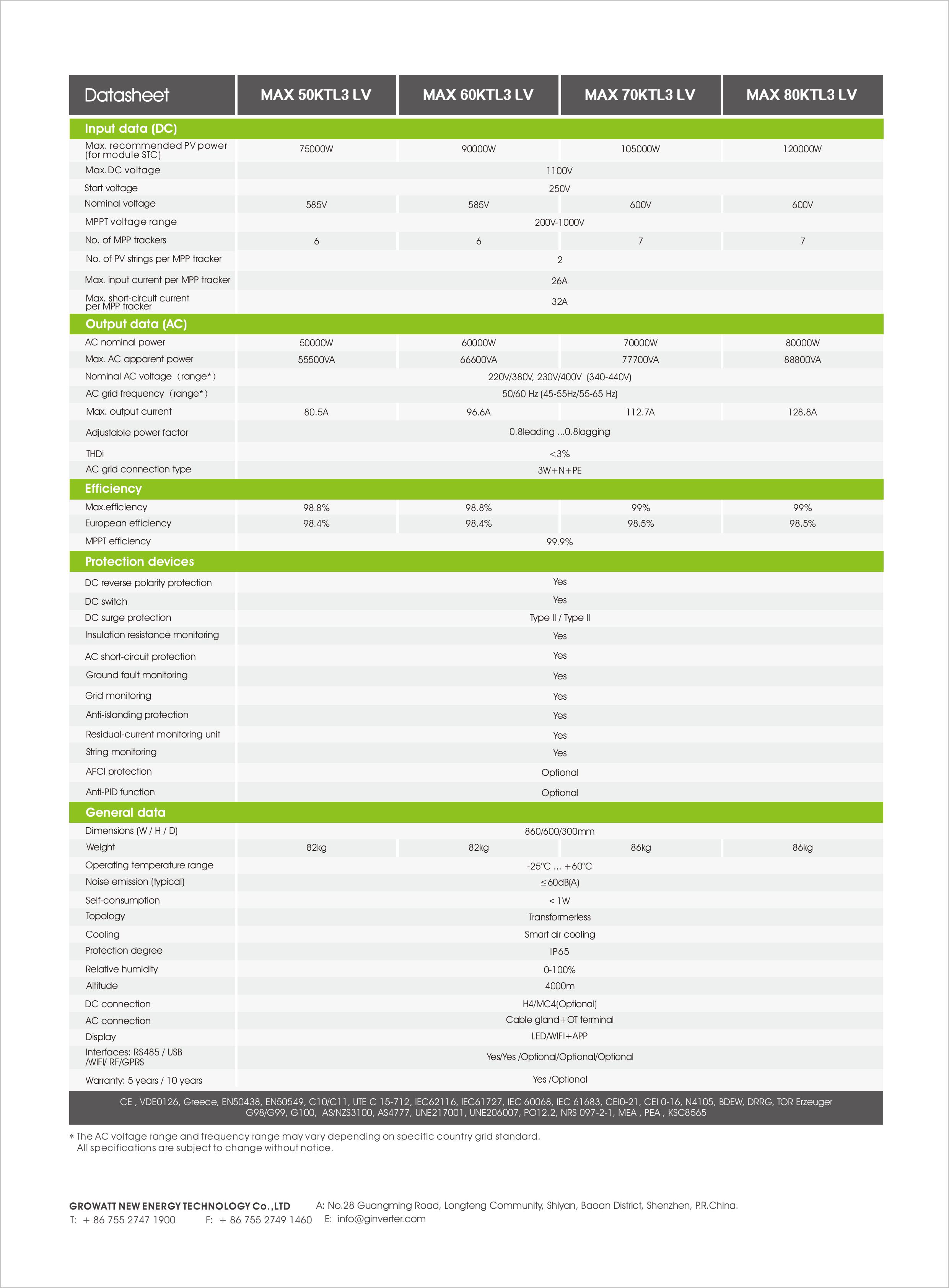 - Sản phẩm chính hãng 100% Growatt, nhập khẩu trực tiếp, có chứng nhận CO-CQ.