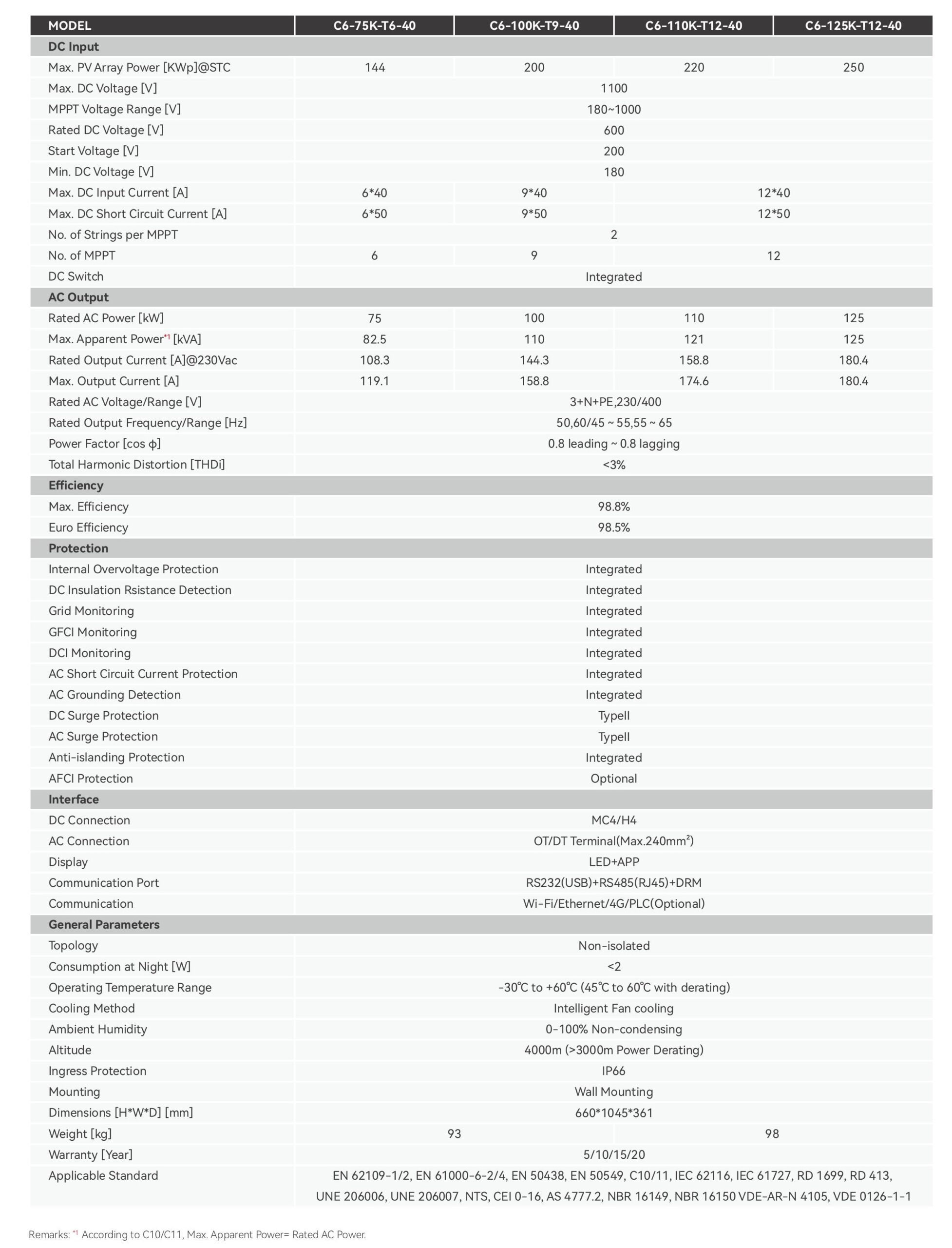 - Công suất định danh (AC): 125kW