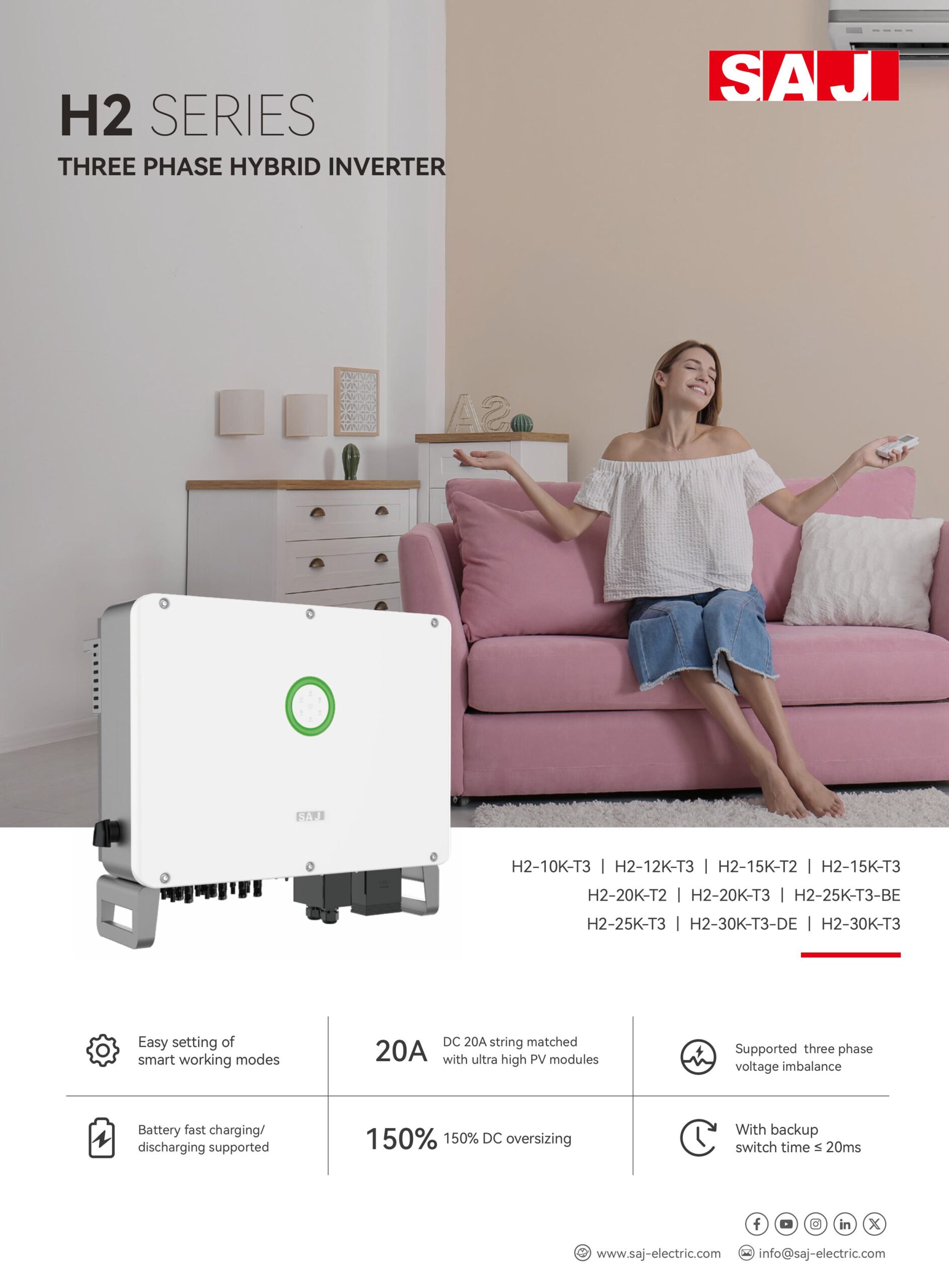 Biến Tần Hybrid Áp Cao SAJ H2-10K-T3 là dòng biến tần lai 3 pha cao cấp thế hệ mới, được thiết kế tối ưu cho các hệ thống điện mặt trời công suất trung bình đến lớn.
