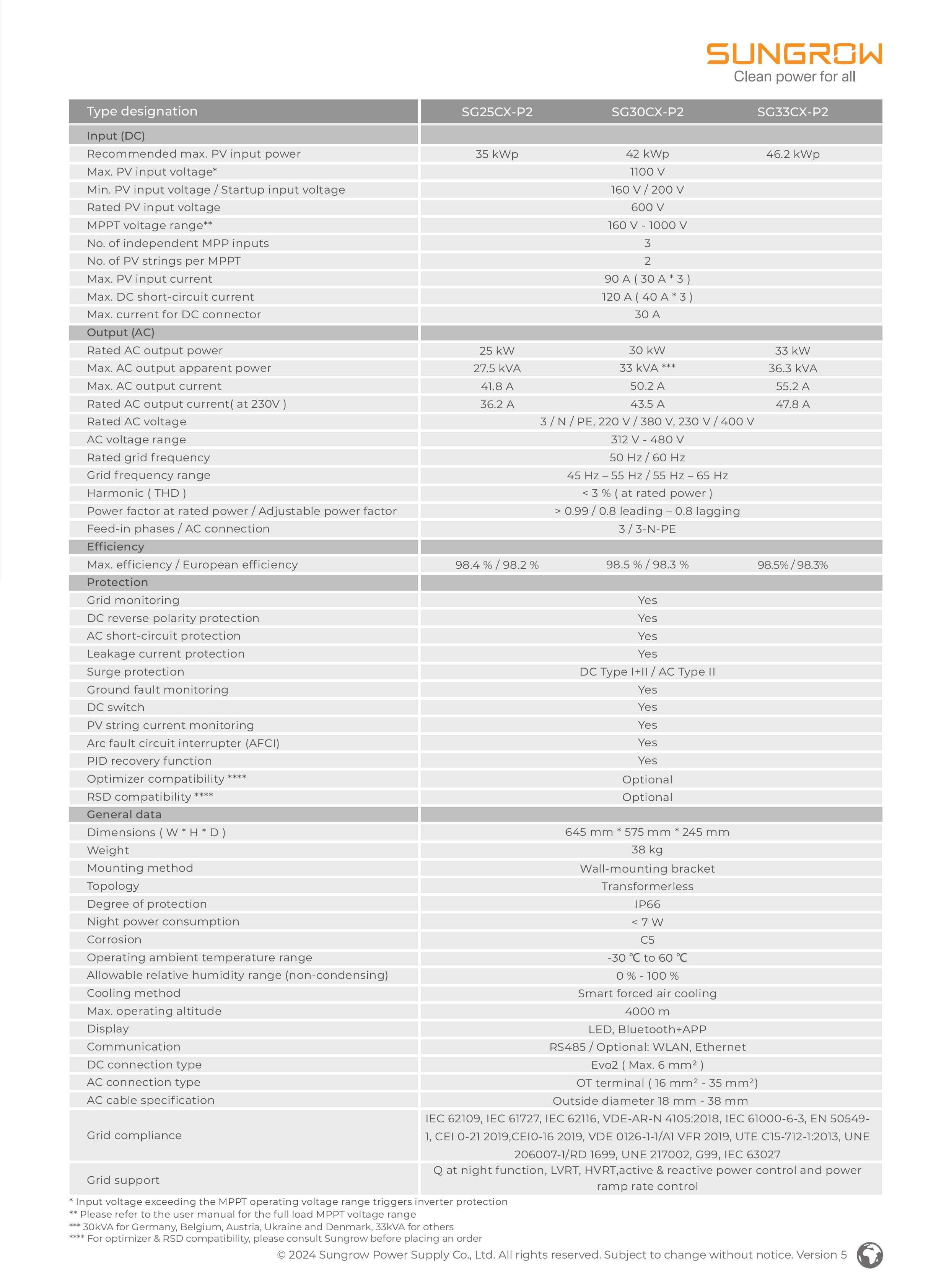 Thông số kỹ thuật chi tiết của Sungrow 33kW – SG33CX-P2