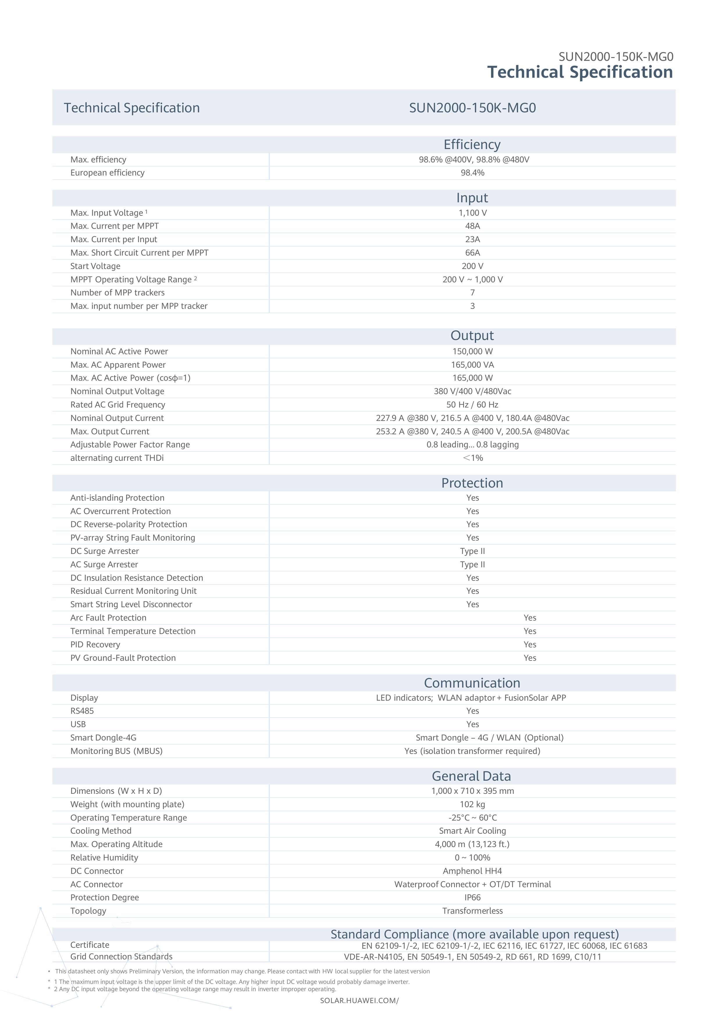 Ưu điểm nổi bật của Huawei SUN2000-150KTL-MG0