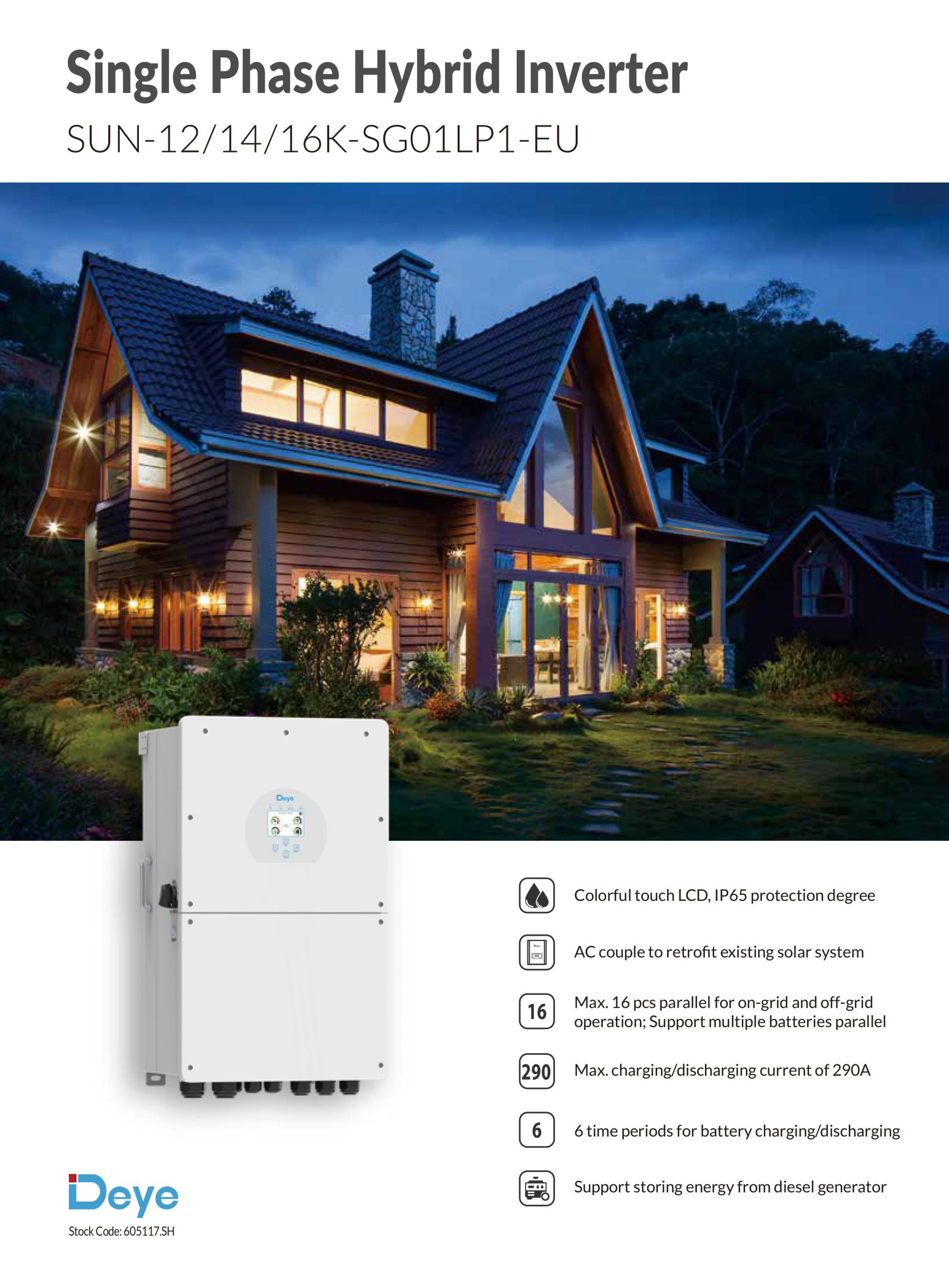 Hybrid Solar Inverter 16kW 1 Pha – SUN-16K-SG01LP1-EU là mẫu biến tần hòa lưới có lưu trữ cao cấp mới nhất của thương hiệu DEYE, được thiết kế dành cho hệ thống điện mặt trời dân dụng quy mô lớn.
