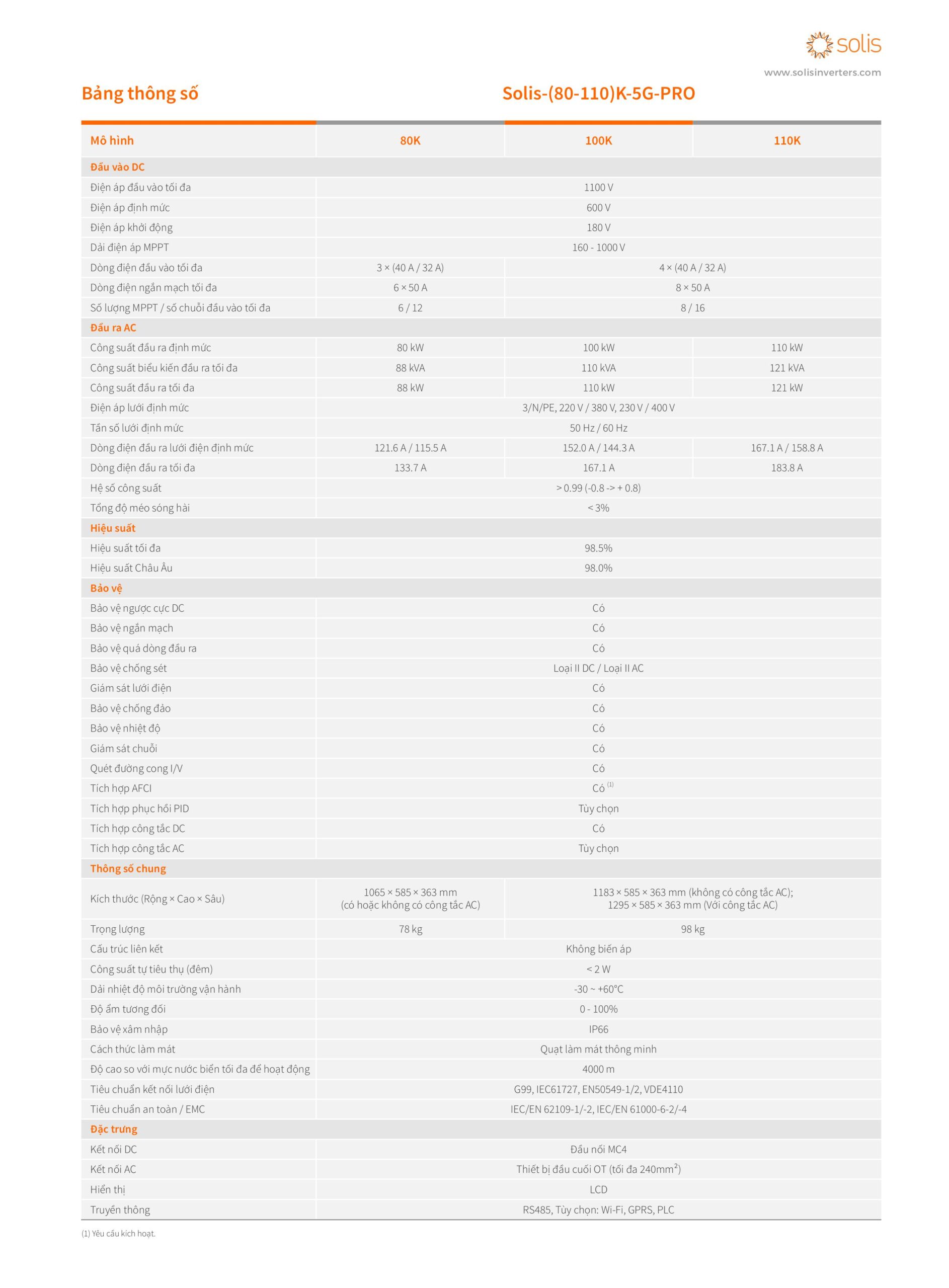 Với công nghệ tiên tiến, thiết kế chuẩn công nghiệp IP66 và khả năng giám sát thông minh, thiết bị này mang lại hiệu quả vận hành tối đa, giảm thiểu chi phí bảo trì và đảm bảo nguồn năng lượng sạch ổn định cho doanh nghiệp.