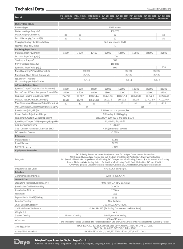 • 20kW (Model SUN-20K-SG01HP3-EU-AM2): Hỗ trợ PV tối đa 26000 W.