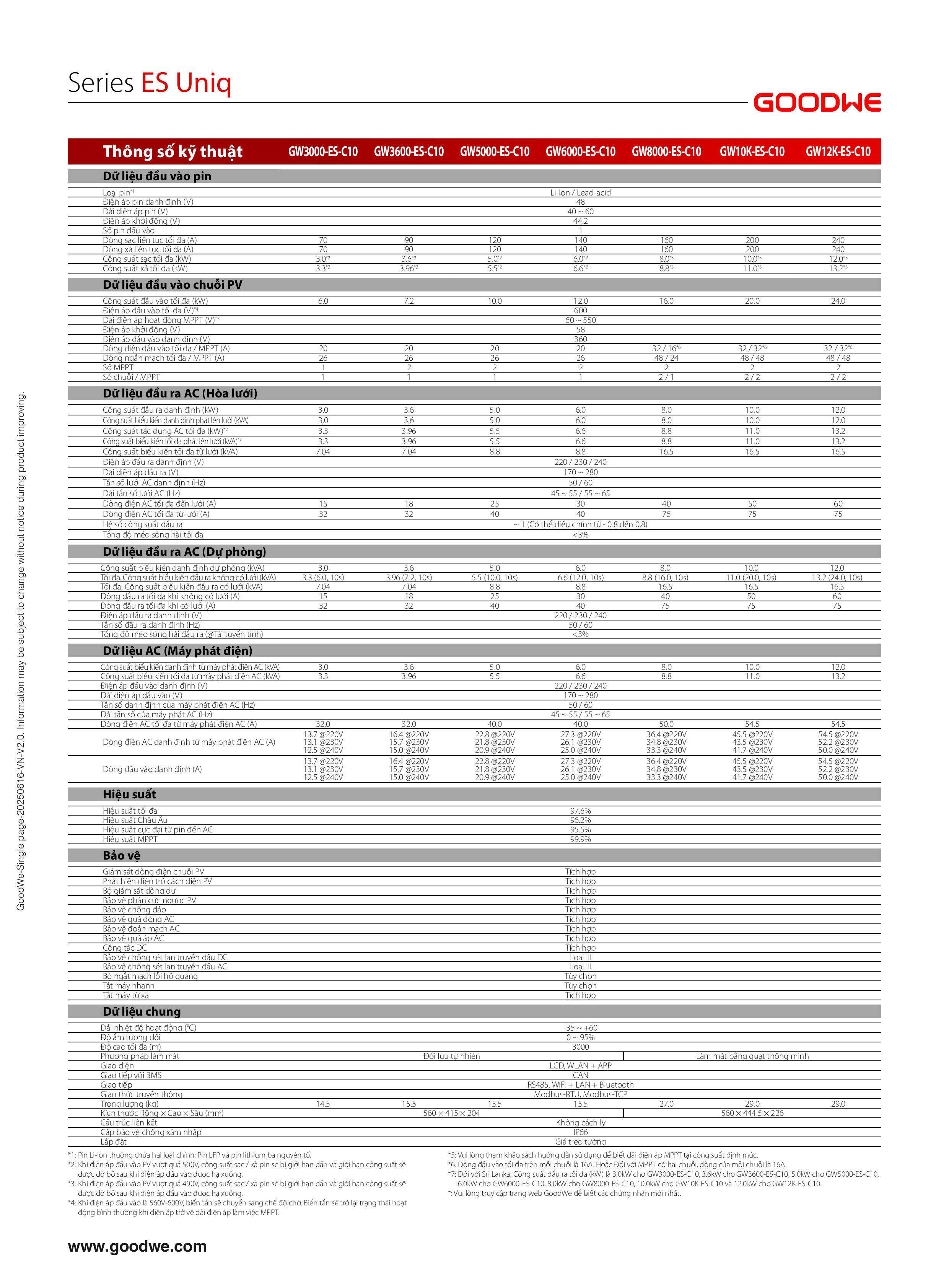 • Bảo hành: 10 năm khi dùng chung battery của Goodwe
