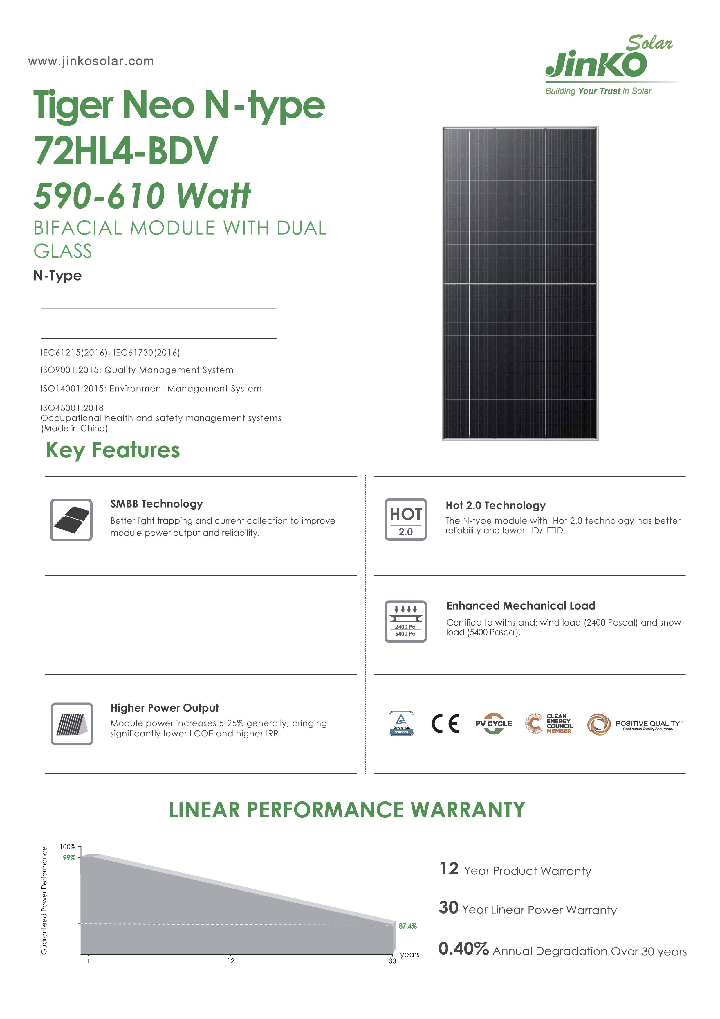 - Sản phẩm chính hãng 100% Jinko Solar – có đầy đủ chứng nhận quốc tế.