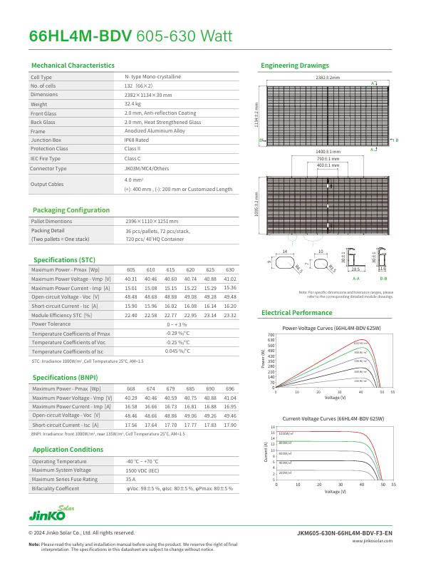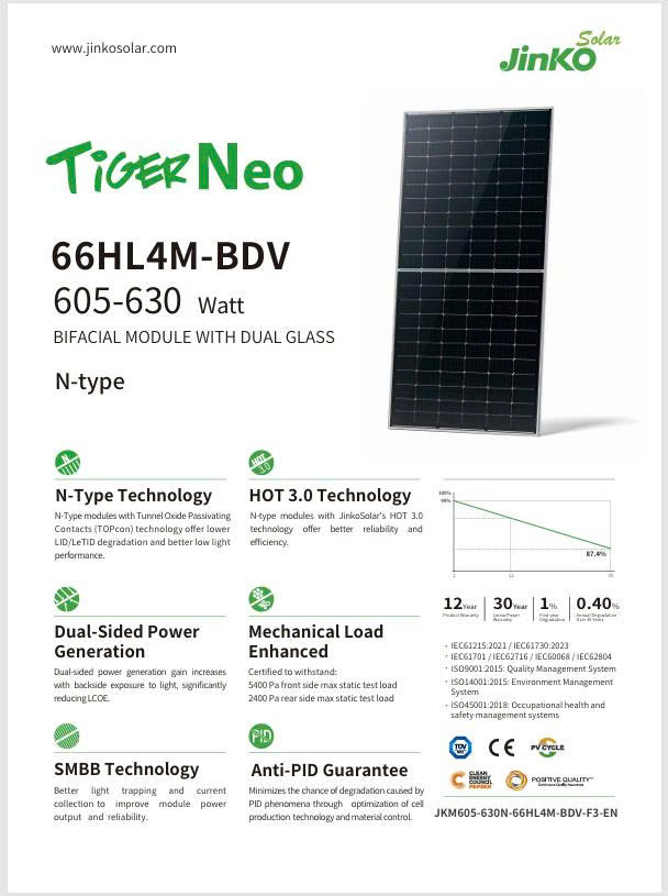 Pin Jinko 620W -66HL4M-BDV N-Type (2 mặt kính) phù hợp cho nhiều quy mô: