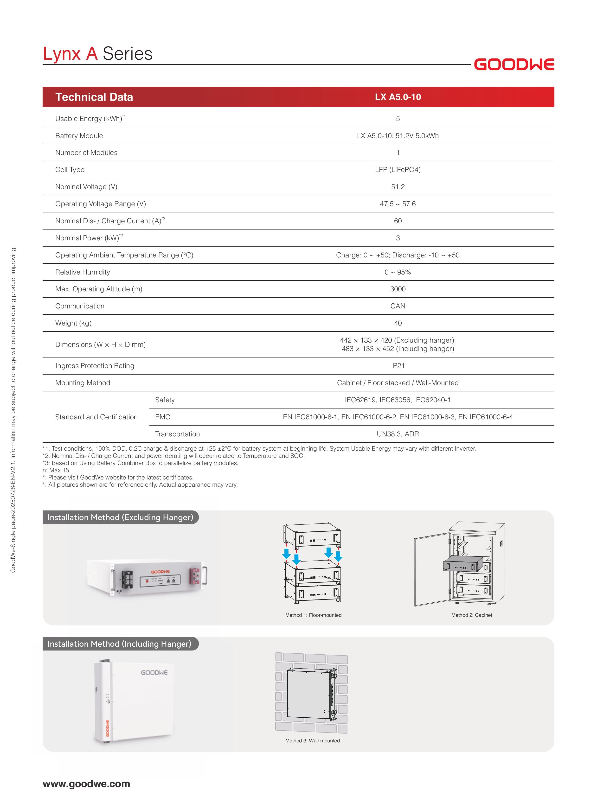 Pin Lưu Trữ Goodwe 5kWh – LX A5.0-10 là bộ pin lithium LiFePO4 thông minh được phát triển bởi thương hiệu Goodwe – một trong những nhà sản xuất thiết bị lưu trữ năng lượng hàng đầu thế giới.