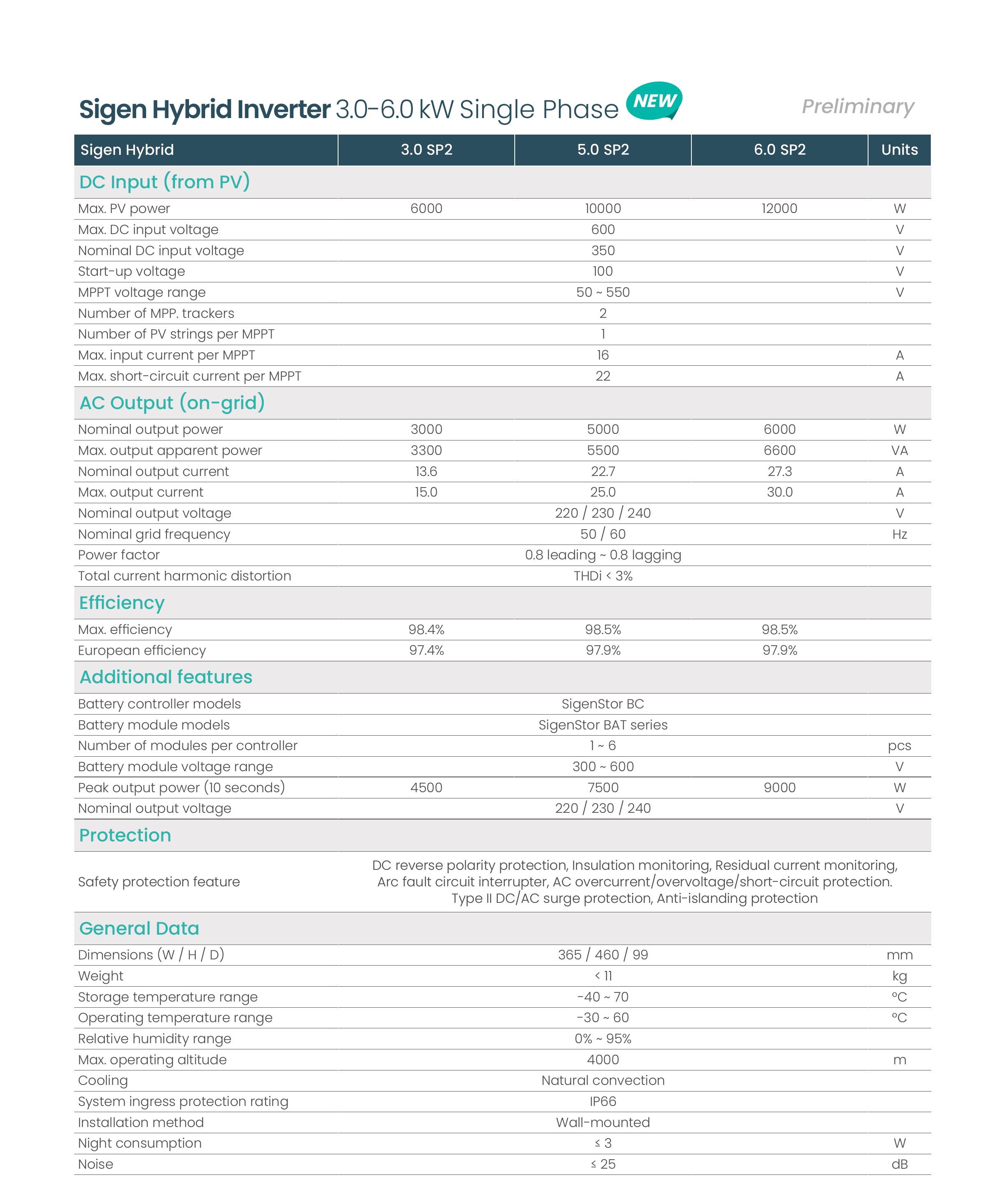 Hiểu rõ thông số kỹ thuật giúp người dùng lựa chọn được sản phẩm phù hợp với nhu cầu vận hành và quy mô hệ thống điện mặt trời. Sigenergy 5kW 3 Pha Ver 2 được thiết kế để đảm bảo độ ổn định, bền bỉ và an toàn tuyệt đối trong mọi điều kiện môi trường.