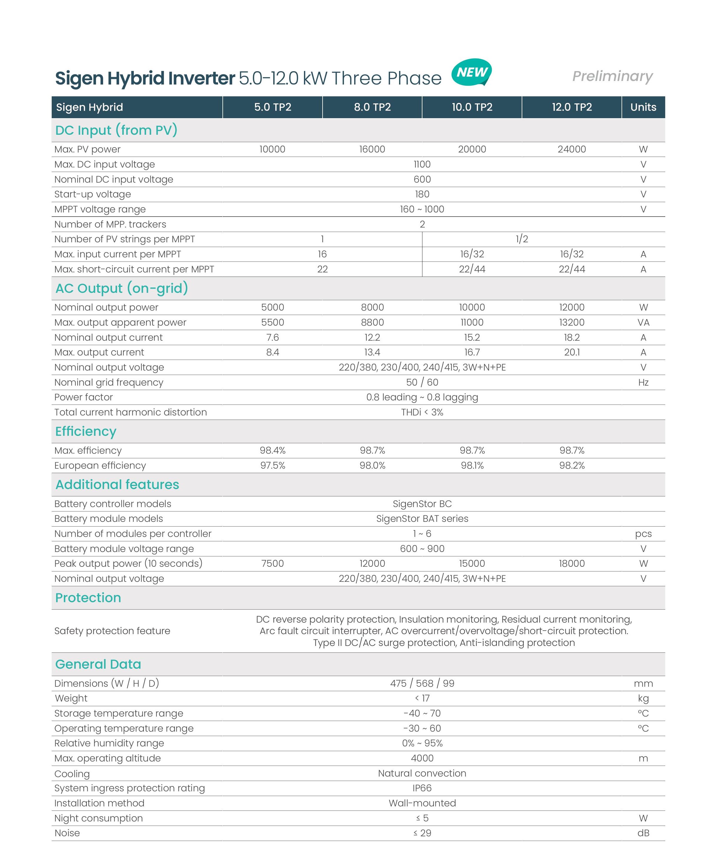 Biến tần Hybrid Sigenergy 5kW 3 Pha Ver 2 – 5.0 TP2 là sản phẩm cao cấp thế hệ mới, kết hợp giữa công nghệ lưu trữ thông minh và khả năng hòa lưới ổn định. Thiết bị mang đến hiệu quả tối đa cho hệ thống điện mặt trời hộ gia đình, doanh nghiệp vừa và nhỏ – giúp tối ưu sản lượng, tiết kiệm điện năng và đảm bảo nguồn điện liên tục ngay cả khi mất điện lưới.