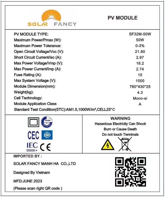 Nếu bạn đang tìm kiếm một giải pháp cung cấp điện năng nhỏ gọn – tiết kiệm – thân thiện môi trường, thì tấm pin mặt trời Villar Solar 50W là lựa chọn đáng cân nhắc. Với thiết kế nhỏ nhưng hiệu quả, sản phẩm đặc biệt phù hợp cho gia đình, dã ngoại, tàu thuyền hay các thiết bị cần nguồn điện độc lập.