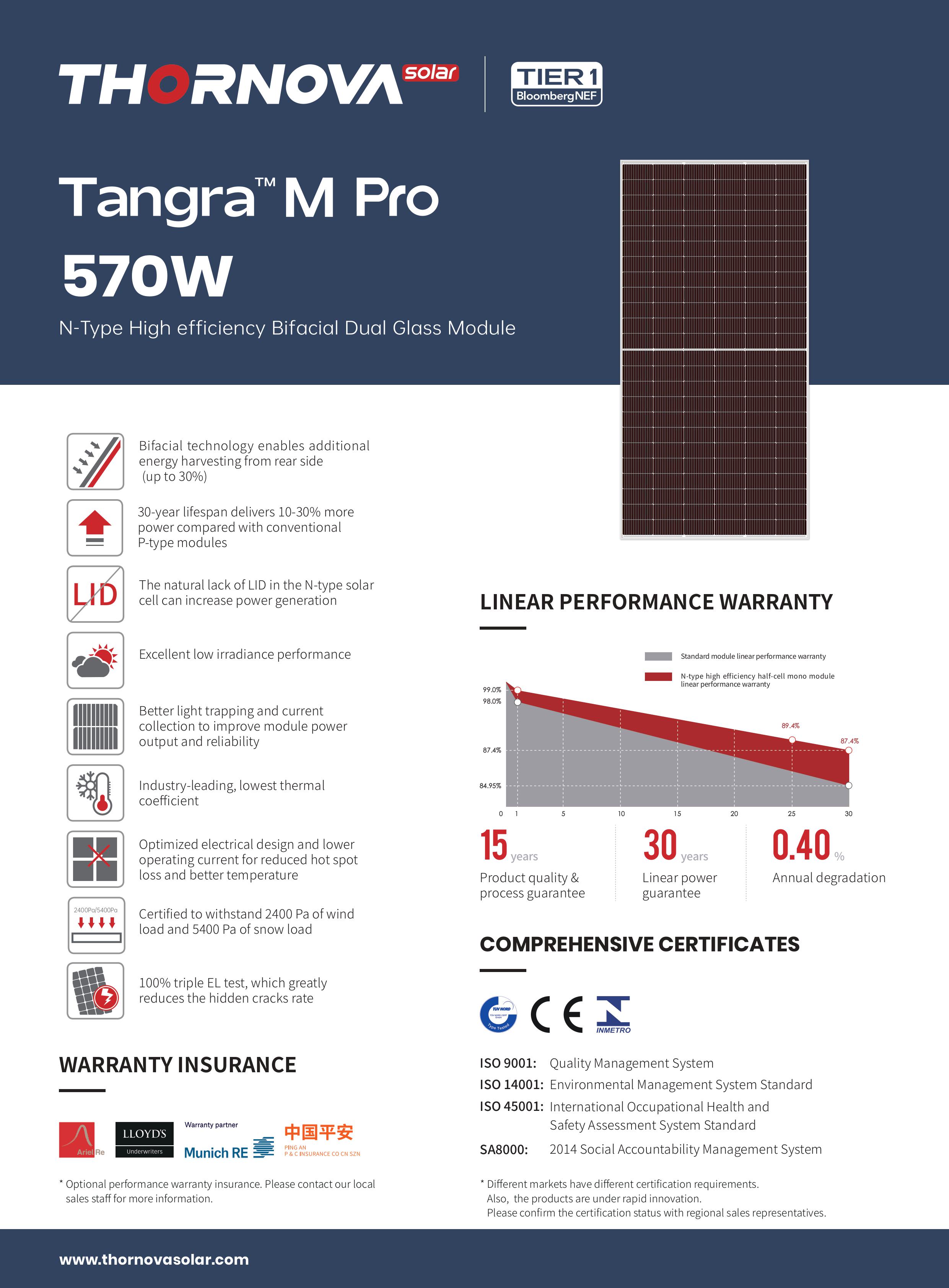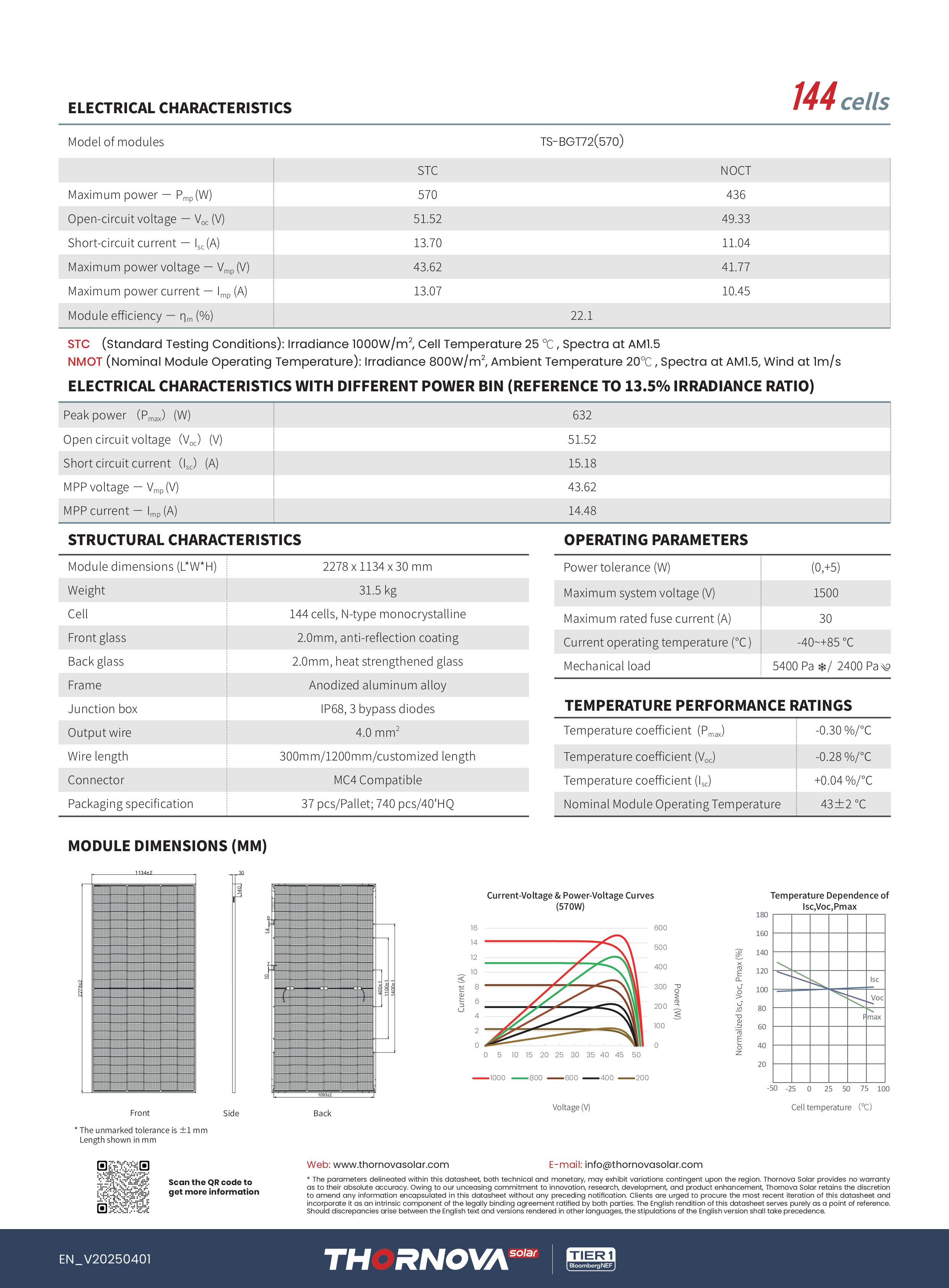 Thông số kỹ thuật nổi bật của tấm pin THORNOVA 570W