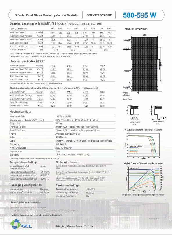 Ưu điểm nổi bật của tấm pin GCL 595W