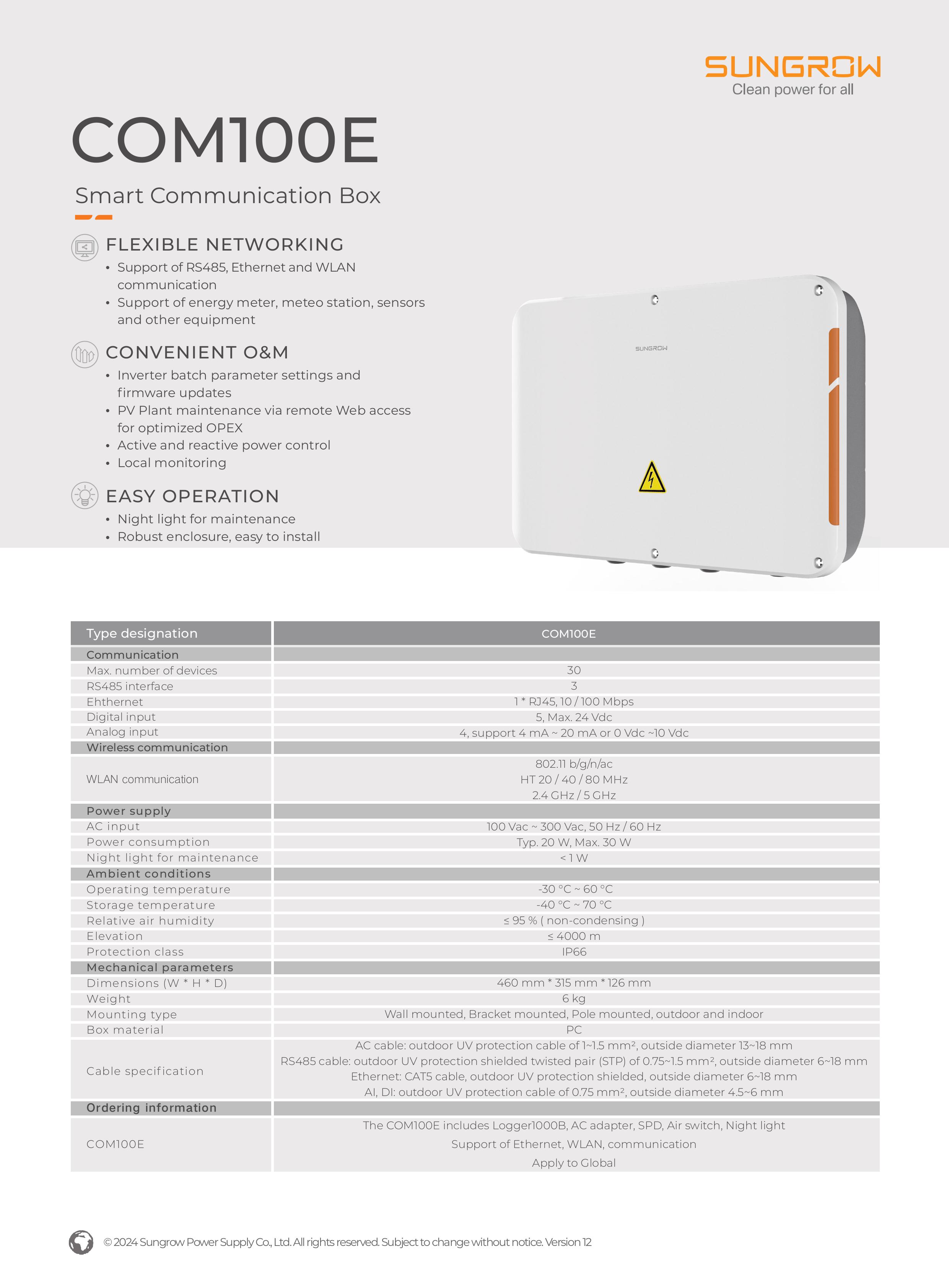 | Model | COM100A (Sungrow S100) |